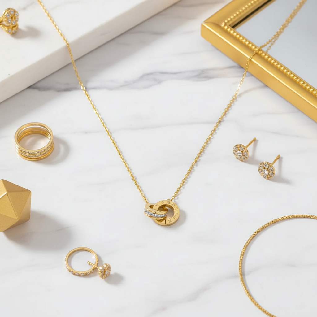 Réalisé en acier inoxydable plaqué or 18K, ce collier raffiné se distingue par son design sobre et intemporel, pensé pour accompagner chaque instant avec grâce.