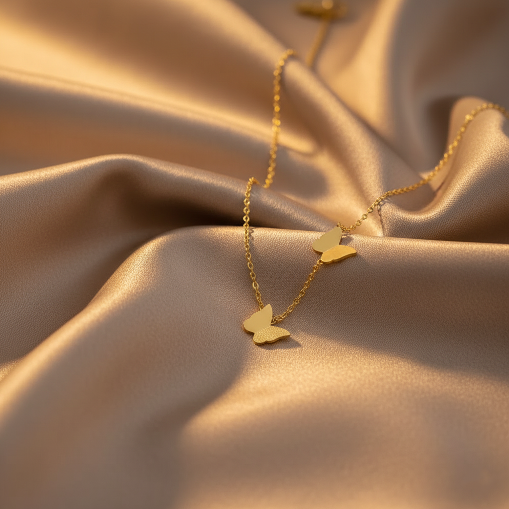 Conçu en acier inoxydable plaqué or 18K, il incarne la délicatesse d’un bijou minimaliste aux lignes pures, pensé pour sublimer la féminité avec subtilité.