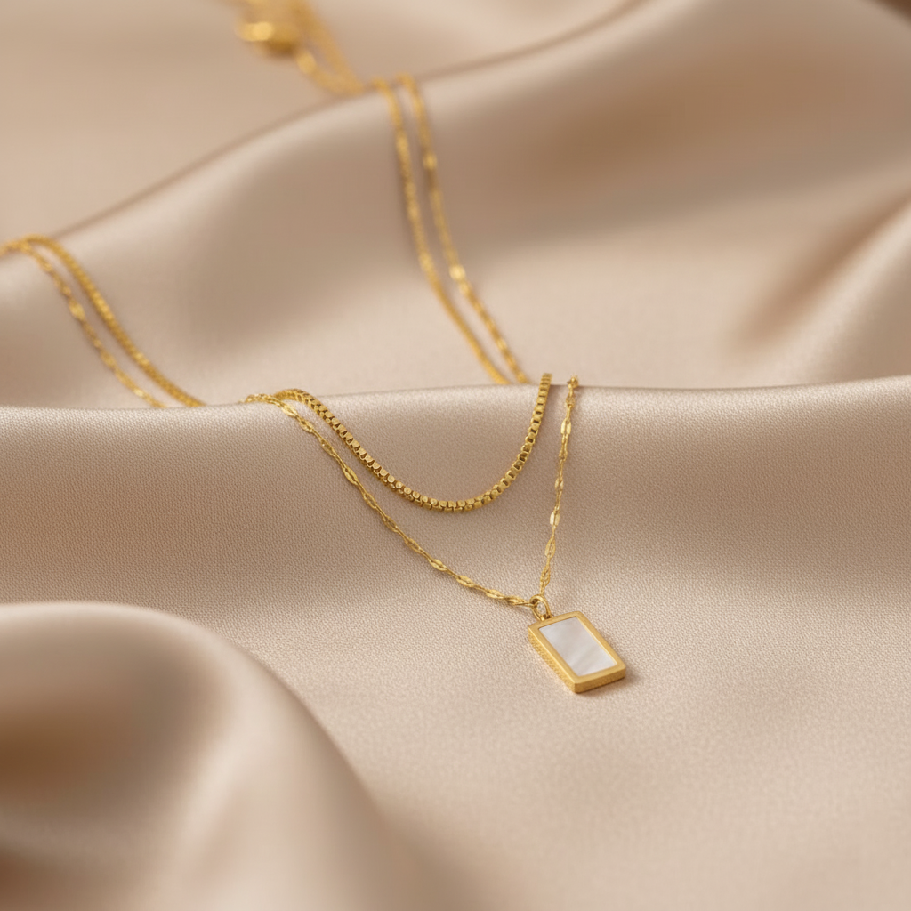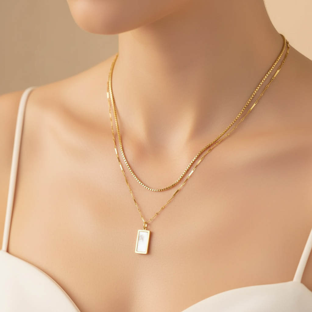 Un pendentif doré, minimaliste et raffiné, qui capte l’éclat avec justesse.