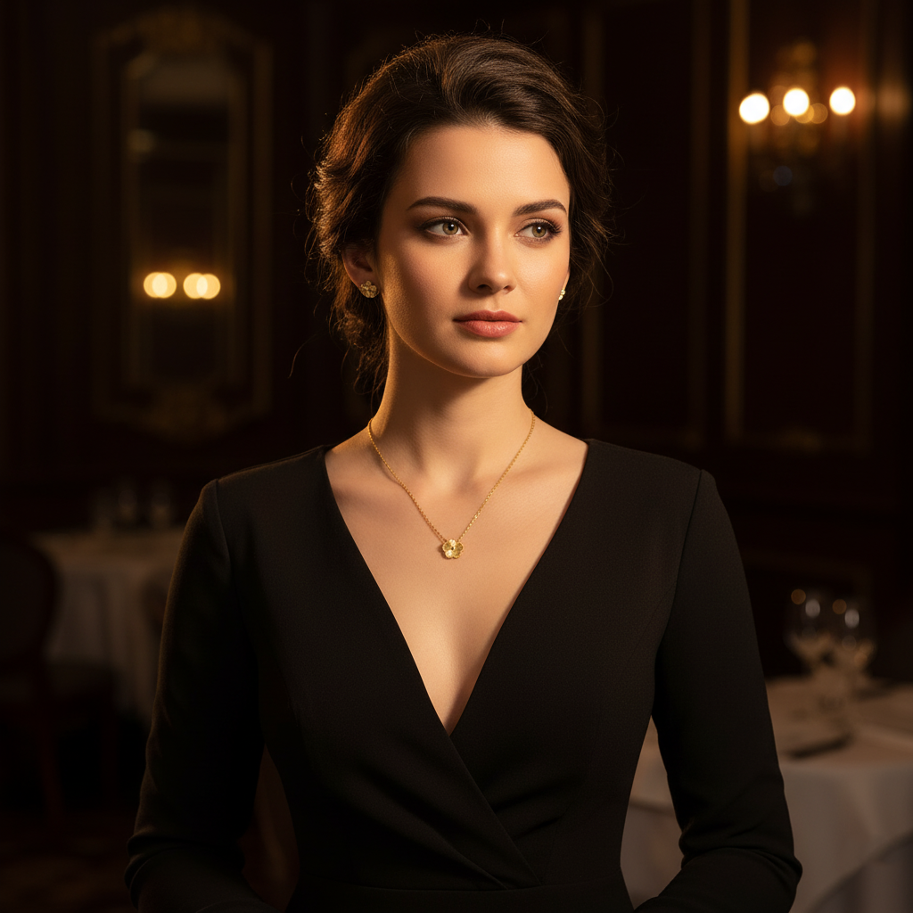 Porté comme un emblème de grâce, ce collier illumine chaque tenue avec un charme subtil et raffiné.